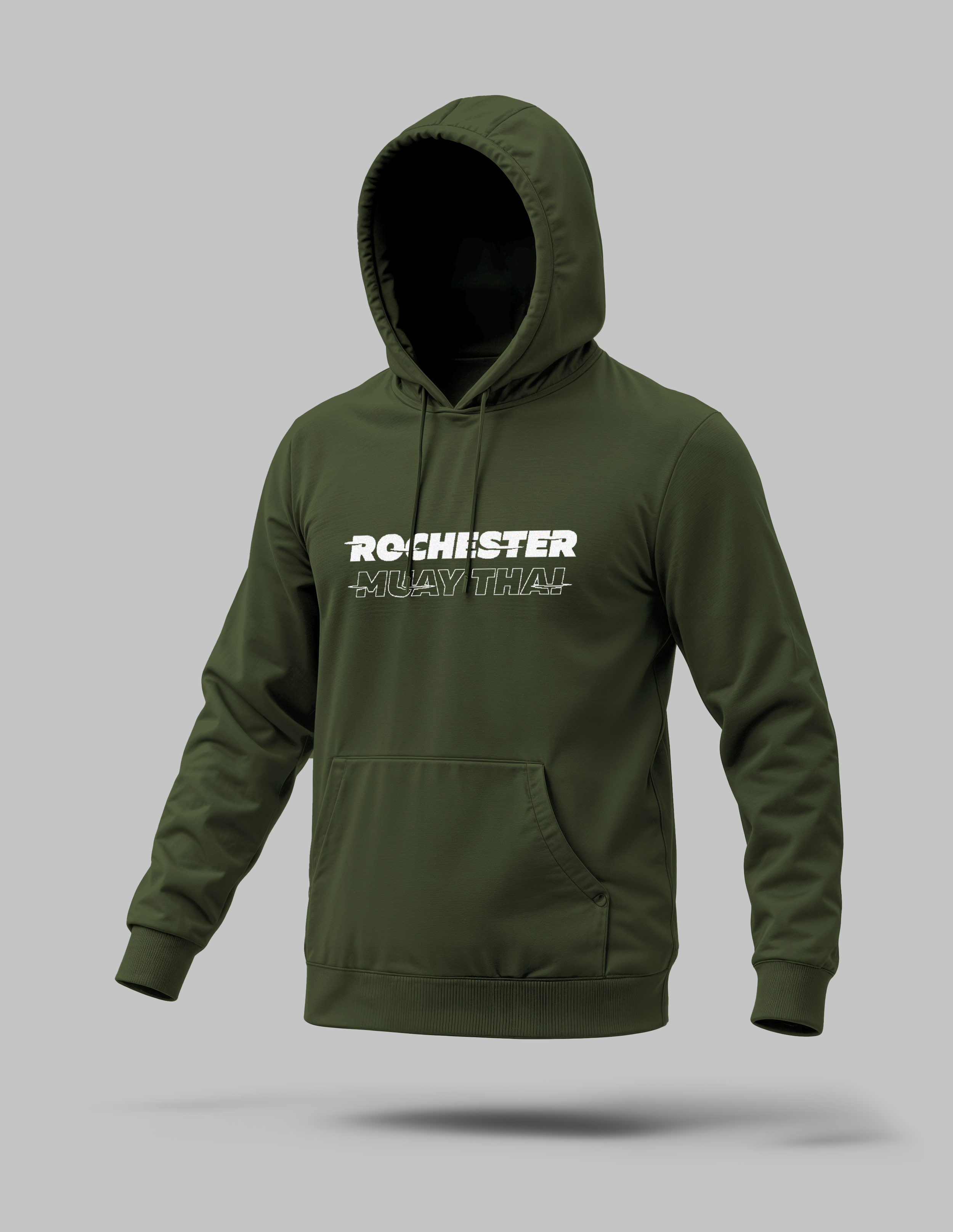 Large print with Rochester Muay Thai “Classic 01” lettermark